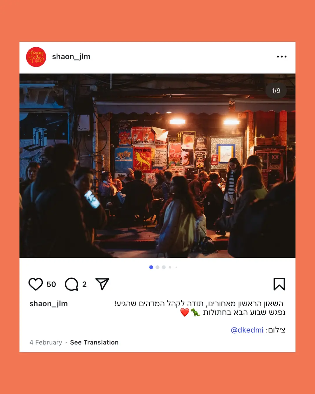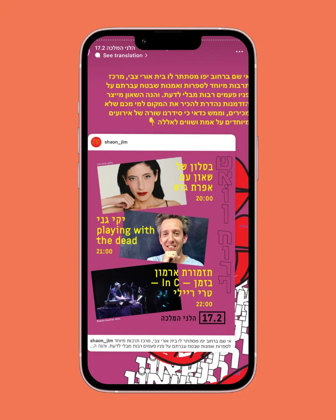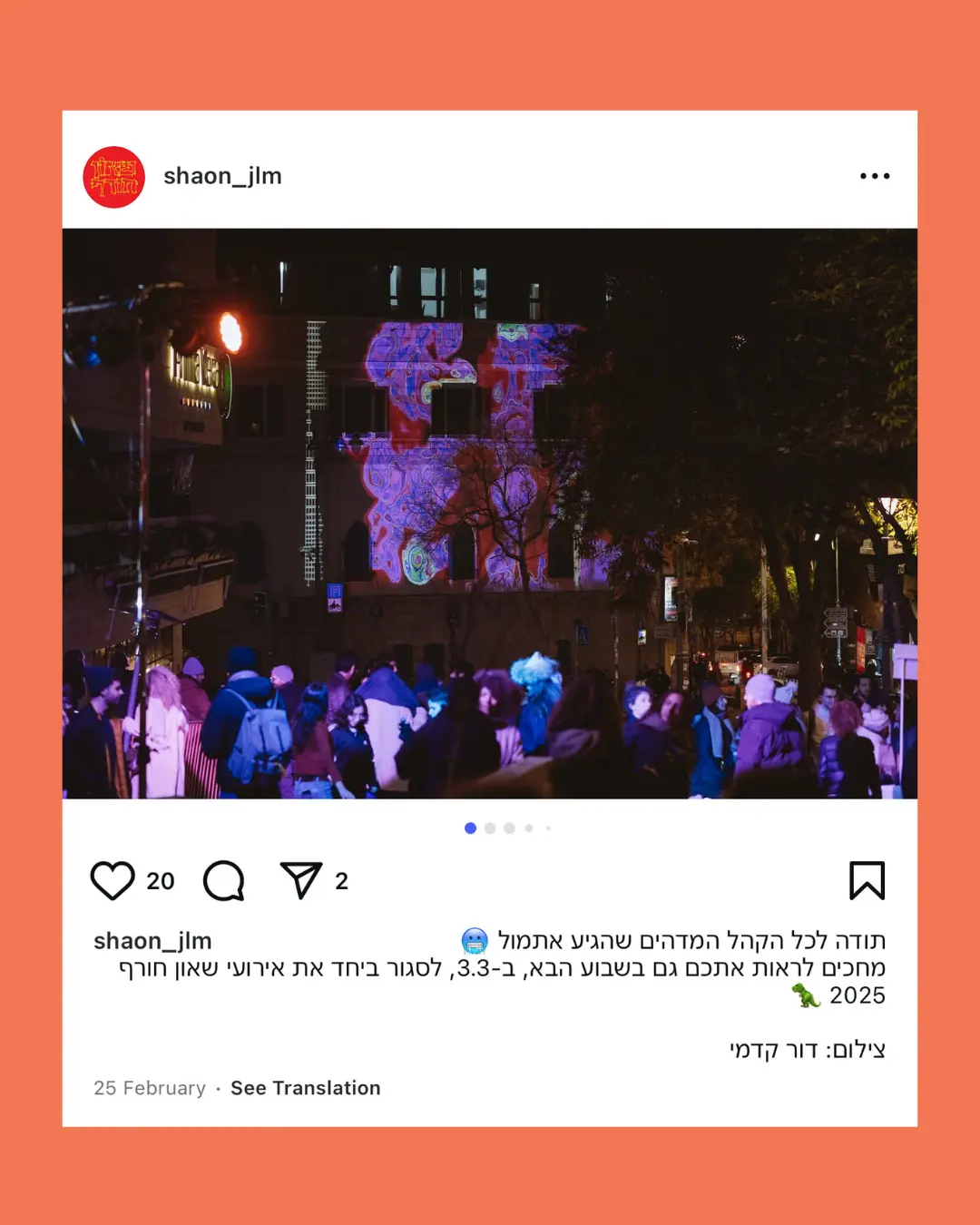במהלך תקופת הפסטיבל העליתי סטוריז שבועיים ופוסטים שוטפים, תוך התאמה של התוכן לקצב האירועים והאווירה הייחודית של הפסטיבל.