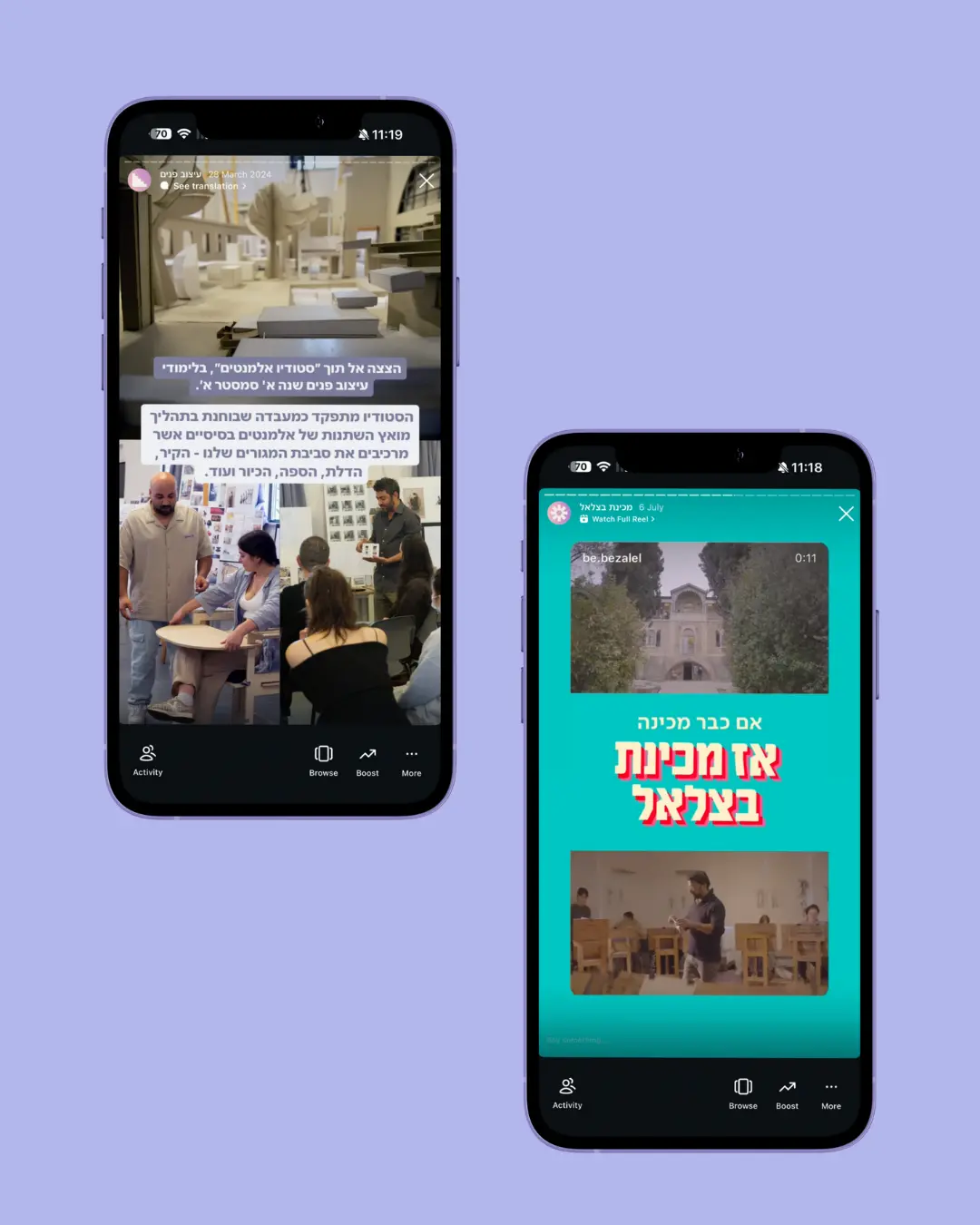 במסגרת העבודה אני אחראית על ניהול מלא של הערוצים הדיגיטליים, קופירייטינג מדויק, יצירת קריאייטיב שמחבר קהל רחב, איתור משפיענים, צילום ועריכת סרטונים שמביאים את הסיפורים לחיים.