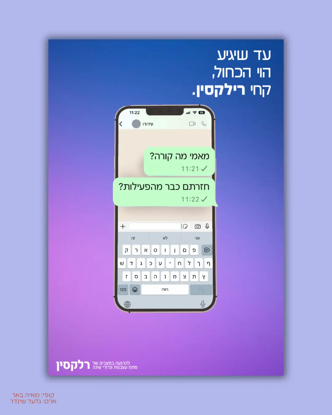 פרויקט הגמר כלל מחקר מעמיק, פיתוח קונספטים מקוריים, כתיבת קופי והעברת החזון לעיצוב – עד ליצירת קמפיין סופי.